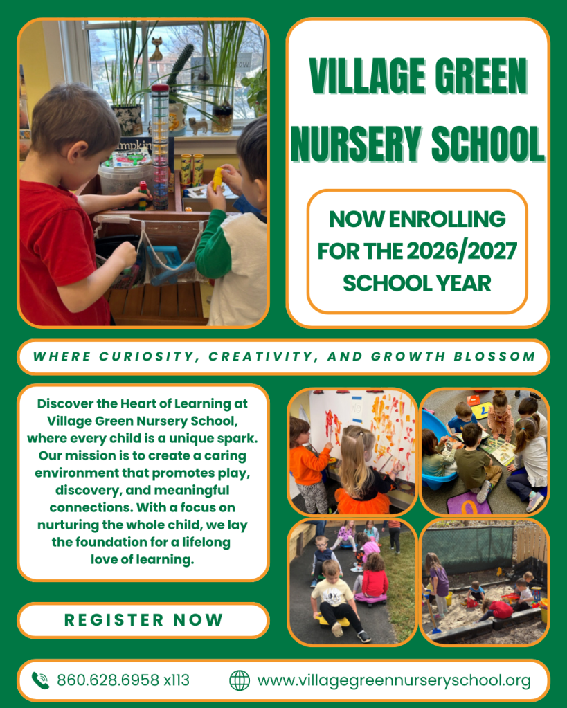 If you would like to register for either program open enrollment begins in January 2022. Current families are eligible to enroll in December 2021. Village Green is offering after hours tours to interested families- give us a call at 860-628-6958 x113 or email at vgns@fccsouthington.org to set up a convenient time.
